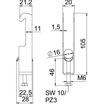 Opis proizvodaLučna obujmica sa W-stopom, metalno pritisno korito sa zaobljenim ivicama radi zaštite kabla. Za vertikalnu i horizontalnu montažu 2 pojedinačna kabla na na ugaonim gvozdenim pprofilima < 40 mm. Pomoću zavrtnja sa 1-strukim navojem pričvrstiti na pritisno korito, univerzalna šestostrana glava zavrtnja SW10, sa ravnim ili krstastim prorezom. Pogodno za montažu u zatvorenom i na otvorenom prostoru. Preporučuje se upotreba kontrakadice
