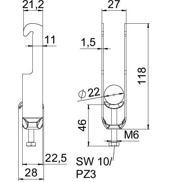bez halogena da Broj kablova/cevi 2 CO2 otisak (GWP) od kolevke do kapije 0,2399 kg CO2e / 1 Komad Debljina lima 1,5 mm Dimenzija 16-22mm Dimenzija A 22,5 mm Dimenzija B 27 mm Dimenzija C 28 mm Dimenzija G (mm) M6 Dimenzija H 118 mm Dimenzija L 46 mm Dimenzija t 1,5 mm Dodatak materijal Čelik Dodatak površina toplo pocinkovano Dužina 22,5 mm Dužina spoljne dimenzije 28 mm Maks. Zatezni momenat 3 Nm Materijal Čelik Način montaže Ugaoni profil Navoj M6 Površina vruće pocinkano utapanjem Sa metalnim koritom da Širina 27 mm Širina proreza 10 mm Visina 118 mm za prečnik cevi maks. 22 mm za prečnik cevi min. 16 mm Zatezna oblast D maks. 22 mm Zatezna oblast D min. 16 mm - Svi tipovi