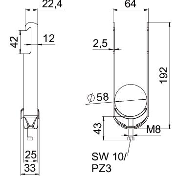 bez halogena da Broj kablova/cevi 2 CO2 otisak (GWP) od kolevke do kapije 0,6823 kg CO2e / 1 Komad Debljina lima 2,5 mm Dimenzija 52-58mm Dimenzija A 25 mm Dimenzija B 64 mm Dimenzija C 33 mm Dimenzija G (mm) M8 Dimenzija H 192 mm Dimenzija L 43 mm Dimenzija t 2,5 mm Dodatak materijal Čelik Dodatak površina toplo pocinkovano Dužina 25 mm Dužina spoljne dimenzije 33 mm Maks. Zatezni momenat 5 Nm Materijal Čelik Način montaže Ugaoni profil Navoj M8 Površina vruće pocinkano utapanjem Sa metalnim koritom da Širina 64 mm Širina proreza 10 mm Visina 192 mm za prečnik cevi maks. 58 mm za prečnik cevi min. 52 mm Zatezna oblast D maks. 58 mm Zatezna oblast D min. 52 mm - Svi tipovi