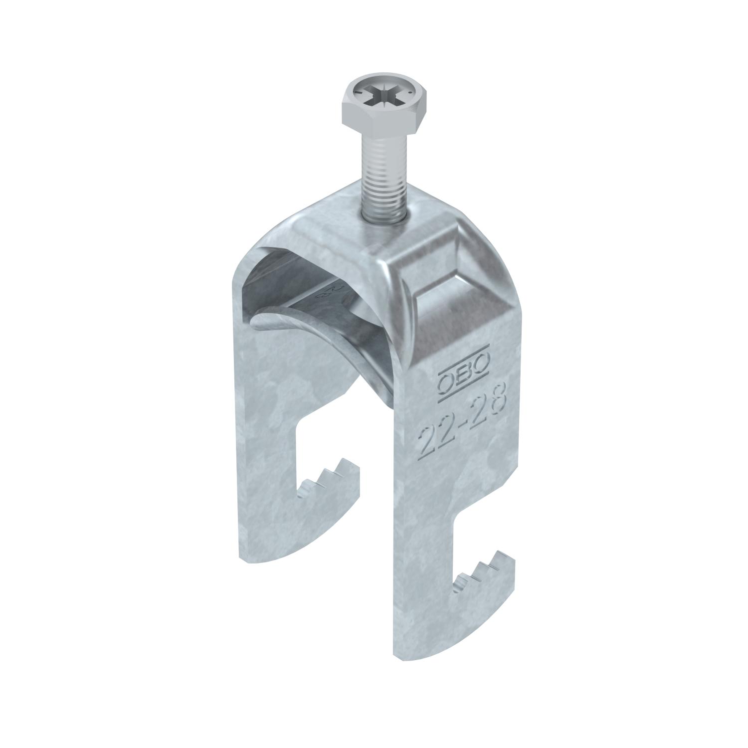 Opis proizvodaLučna obujmica sa F-stopom, metalno pritisno korito sa zaobljenim ivicama radi zaštite kabla. Za vertikalnu i horizontalnu montažu 1 pojedinačnog kabla na ravan gvozdeni profil Pomoću zavrtnja sa 1-strukim navojem pričvrstiti na pritisno korito, univerzalna šestostrana glava zavrtnja SW10, sa ravnim ili krstastim prorezom. Pomoću zavrtnja sa 1-strukim navojem pričvrstiti na pritisno korito, univerzalna šestostrana glava zavrtnja SW10, sa ravnim ili krstastim prorezom. Pogodno za montažu u zatvorenom i na otvorenom prostoru. Preporučuje se upotreba kontrakadice