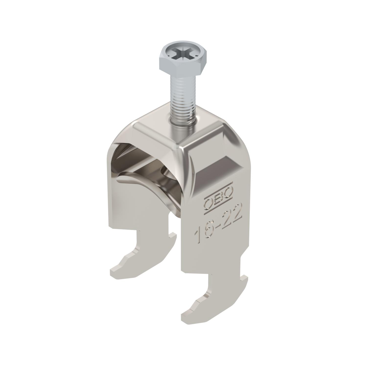 Opis proizvodaLučna obujmica sa čekićastom stopom, metalno pritisno korito sa zaobljenim ivicama radi zaštite kabla. Za vertikalnu i horizontalnu montažu jednog pojedinačnog kabla na C-šinu Za širinu proreza 16 - 17 mm. Pomoću zavrtnja sa 1-strukim navojem pričvrstiti na pritisno korito, univerzalna šestostrana glava zavrtnja SW10, sa ravnim ili krstastim prorezom. Pogodno za montažu u zatvorenom i na otvorenom prostoru. Preporučuje se upotreba kontrakadice