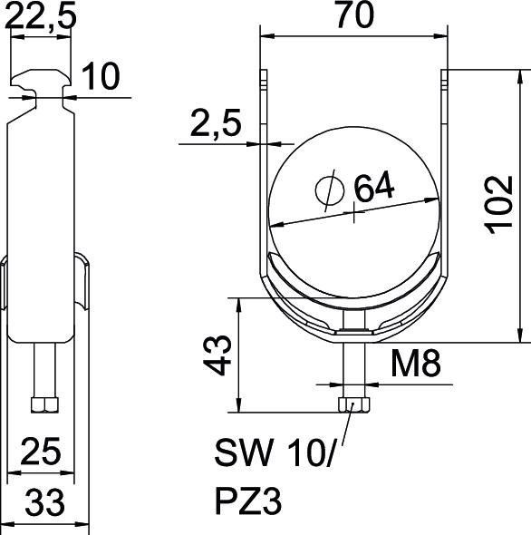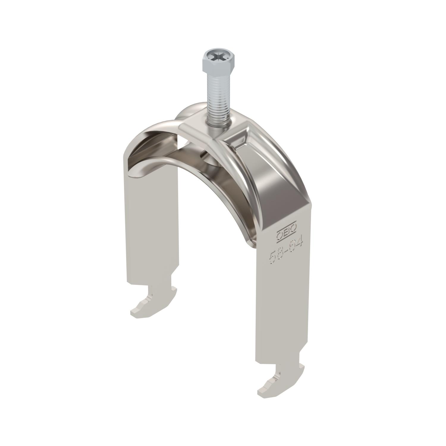 Opis proizvodaLučna obujmica sa čekićastom stopom, metalno pritisno korito sa zaobljenim ivicama radi zaštite kabla. Za vertikalnu i horizontalnu montažu jednog pojedinačnog kabla na C-šinu Za širinu proreza 16 - 17 mm. Pomoću zavrtnja sa 1-strukim navojem pričvrstiti na pritisno korito, univerzalna šestostrana glava zavrtnja SW10, sa ravnim ili krstastim prorezom. Pogodno za montažu u zatvorenom i na otvorenom prostoru. Preporučuje se upotreba kontrakadice