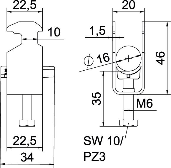 Opis proizvodaLučna obujmica sa čekićastom stopom, plastično pritisno korito od polipropilena. Za vertikalnu i horizontalnu montažu jednog pojedinačnog kabla na C-šinu Za širinu proreza 16 - 17 mm. Pomoću zavrtnja sa 1-strukim navojem pričvrstiti na pritisno korito, univerzalna šestostrana glava zavrtnja SW10, sa ravnim ili krstastim prorezom. Pogodno za montažu u zatvorenom i na otvorenom prostoru. Preporučuje se upotreba kontrakadice