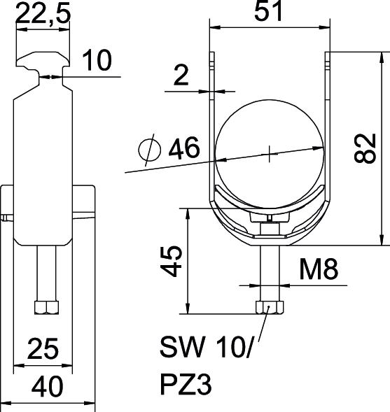 bez halogena da Broj kablova/cevi 1 CO2 otisak (GWP) od kolevke do kapije 0,6182 kg CO2e / 1 Komad Debljina lima 2 mm Dimenzija 40-46mm Dimenzija A 25 mm Dimenzija B 51 mm Dimenzija C 40 mm Dimenzija G (mm) M8 Dimenzija H 82 mm Dimenzija L 45 mm Dimenzija t 2 mm Dodatak materijal nerajući čelik Dodatak površina netretirano Dužina 25 mm Dužina spoljne dimenzije 40 mm Kvalitet materijala korita Polipropilen Maks. Zatezni momenat 5 Nm Materijal plemeniti čelik, nerđajući 1.4301 Materijal korita Plastika Način montaže Profilna šina Navoj M8 Površina svetlo, naknadno obrađeno Sa kontrakoritom ne Sa plastičnim koritom da Širina 51 mm Širina proreza 10 mm Visina 82 mm za prečnik cevi maks. 46 mm za prečnik cevi min. 40 mm za šine širine proreza (sa intervalom) maks. 17 mm za šine širine proreza (sa intervalom) min. 16 mm Zatezna oblast D maks. 46 mm Zatezna oblast D min. 40 mm - Svi tipovi