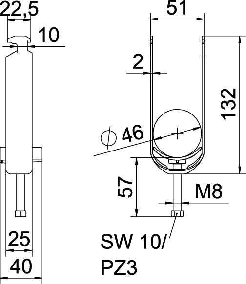 Opis proizvodaLučna obujmica sa čekićastom stopom, plastično pritisno korito od polipropilena. Za vertikalnu i horizontalnu montažu 2 pojedinačna kabla na C-profilnu šinu. Za širinu proreza 16 - 17 mm. Pomoću zavrtnja sa 1-strukim navojem pričvrstiti na pritisno korito, univerzalna šestostrana glava zavrtnja SW10, sa ravnim ili krstastim prorezom. Pogodno za montažu u zatvorenom i na otvorenom prostoru. Više kablova treba odvojiti dvostrukim koritom. Preporučuje se upotreba kontrakadice