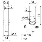 Opis proizvodaLučna obujmica sa čekićastom stopom, plastično pritisno korito od polipropilena. Za vertikalnu i horizontalnu montažu 2 pojedinačna kabla na C-profilnu šinu. Za širinu proreza 16 - 17 mm. Pomoću zavrtnja sa 1-strukim navojem pričvrstiti na pritisno korito, univerzalna šestostrana glava zavrtnja SW10, sa ravnim ili krstastim prorezom. Pogodno za montažu u zatvorenom i na otvorenom prostoru. Više kablova treba odvojiti dvostrukim koritom. Preporučuje se upotreba kontrakadice