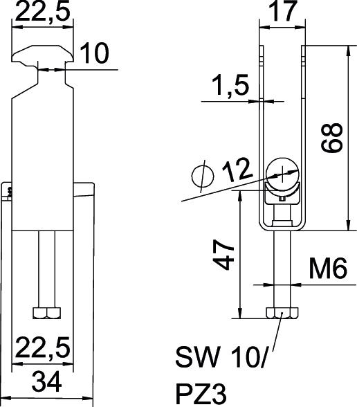 bez halogena da Broj kablova/cevi 3 CO2 otisak (GWP) od kolevke do kapije 0,1109 kg CO2e / 1 Komad Debljina lima 1,5 mm Dimenzija 08-12mm Dimenzija A 22,5 mm Dimenzija B 17 mm Dimenzija C 34 mm Dimenzija G (mm) M6 Dimenzija H 68 mm Dimenzija L 47 mm Dimenzija t 1,5 mm Dodatak materijal Čelik Dodatak površina toplo pocinkovano Dužina 22,5 mm Dužina spoljne dimenzije 34 mm Kvalitet materijala korita Polipropilen Maks. Zatezni momenat 3 Nm Materijal Čelik Materijal korita Plastika Način montaže Profilna šina Navoj M6 Površina vruće pocinkano utapanjem Sa kontrakoritom ne Sa plastičnim koritom da Širina 17 mm Širina proreza 10 mm Visina 68 mm za prečnik cevi maks. 12 mm za prečnik cevi min. 8 mm za šine širine proreza (sa intervalom) maks. 17 mm za šine širine proreza (sa intervalom) min. 16 mm Zatezna oblast D maks. 12 mm Zatezna oblast D min. 8 mm - Svi tipovi
