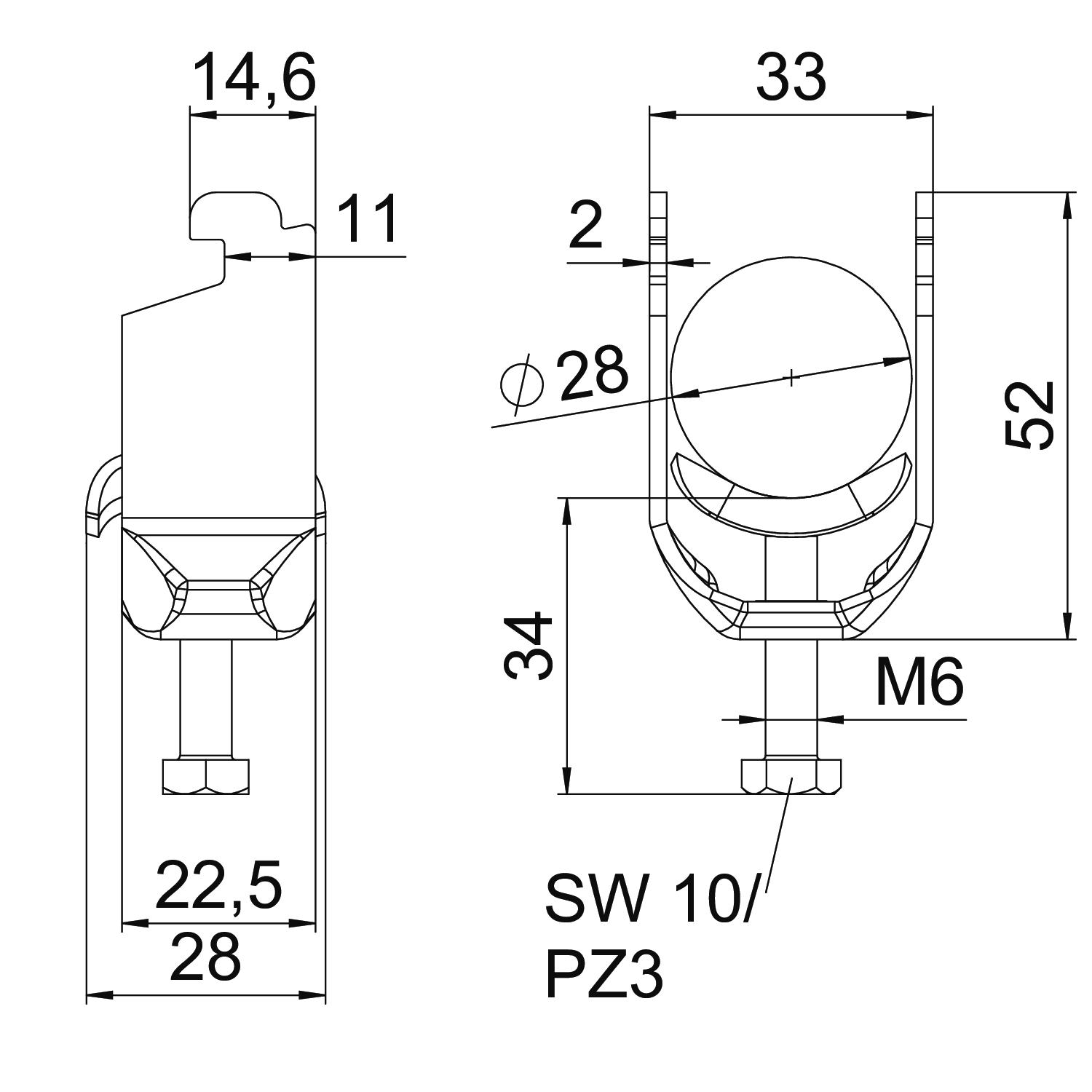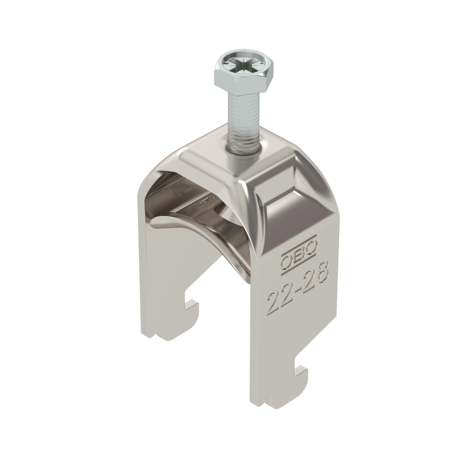 Opis proizvodaLučna obujmica sa N-stopom, metalno pritisno korito sa zaobljenim ivicama radi zaštite kabla Za vertikalnu i horizontalnu montažu jednog pojedinačnog kabla na C-šinu Za širinu proreza 11 - 12 mm. Pomoću zavrtnja sa 1-strukim navojem pričvrstiti na pritisno korito, univerzalna šestostrana glava zavrtnja SW10, sa ravnim ili krstastim prorezom. Pogodno za montažu u zatvorenom i na otvorenom prostoru. Preporučuje se upotreba kontrakadice