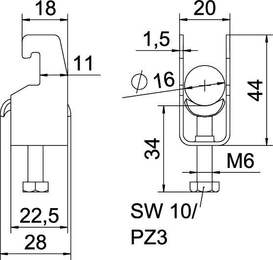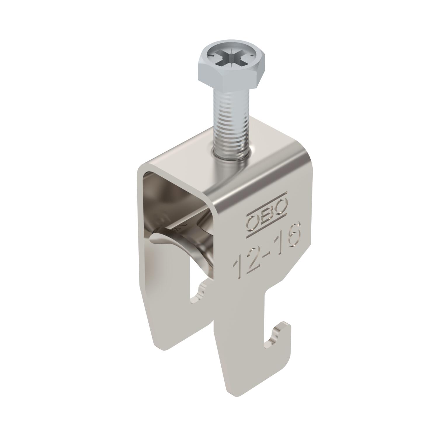 Opis proizvodaLučna obujmica sa U-stopom, metalno pritisno korito sa zaobljenim ivicama radi zaštite kabla. Za vertikalnu i horizontalnu montažu jednog pojedinačnog kabla na C-šinu Za širinu proreza 18 - 22 mm. Pomoću zavrtnja sa 1-strukim navojem pričvrstiti na pritisno korito, univerzalna šestostrana glava zavrtnja SW10, sa ravnim ili krstastim prorezom. Pogodno za montažu u zatvorenom i na otvorenom prostoru. Preporučuje se upotreba kontrakadice