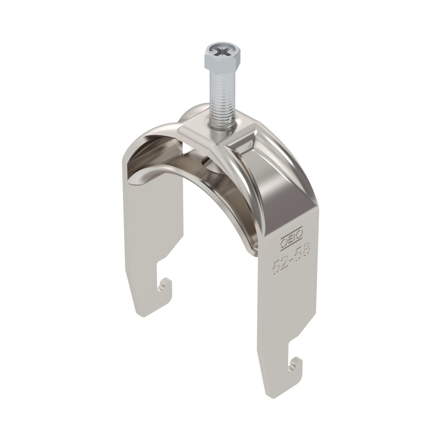 Opis proizvodaLučna obujmica sa U-stopom, metalno pritisno korito sa zaobljenim ivicama radi zaštite kabla. Za vertikalnu i horizontalnu montažu jednog pojedinačnog kabla na C-šinu Za širinu proreza 18 - 22 mm. Pomoću zavrtnja sa 1-strukim navojem pričvrstiti na pritisno korito, univerzalna šestostrana glava zavrtnja SW10, sa ravnim ili krstastim prorezom. Pogodno za montažu u zatvorenom i na otvorenom prostoru. Preporučuje se upotreba kontrakadice