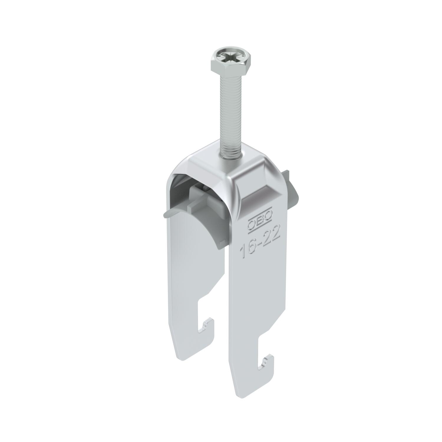 Opis proizvodaLučna obujmica sa U-stopom, plastično pritisno korito od polipropilena. Za vertikalnu i horizontalnu montažu 2 pojedinačna kabla na C-profilnu šinu. Za širinu proreza 18 - 22 mm. Pomoću zavrtnja sa 1-strukim navojem pričvrstiti na pritisno korito, univerzalna šestostrana glava zavrtnja SW10, sa ravnim ili krstastim prorezom. Pogodno za montažu u zatvorenom i na otvorenom prostoru. Više kablova treba odvojiti dvostrukim koritom. Preporučuje se upotreba kontrakadice