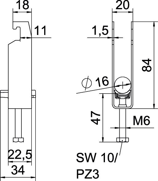 Opis proizvodaLučna obujmica sa U-stopom, plastično pritisno korito od polipropilena. Za vertikalnu i horizontalnu montažu 3 pojedinačna kabla na C-profilnu šinu. Za širinu proreza 18 mm или 22 mm. Pomoću zavrtnja sa 1-strukim navojem pričvrstiti na pritisno korito, univerzalna šestostrana glava zavrtnja SW10, sa ravnim ili krstastim prorezom. Pogodno za montažu u zatvorenom i na otvorenom prostoru. Više kablova treba odvojiti dvostrukim koritom. Preporučuje se upotreba kontrakadice