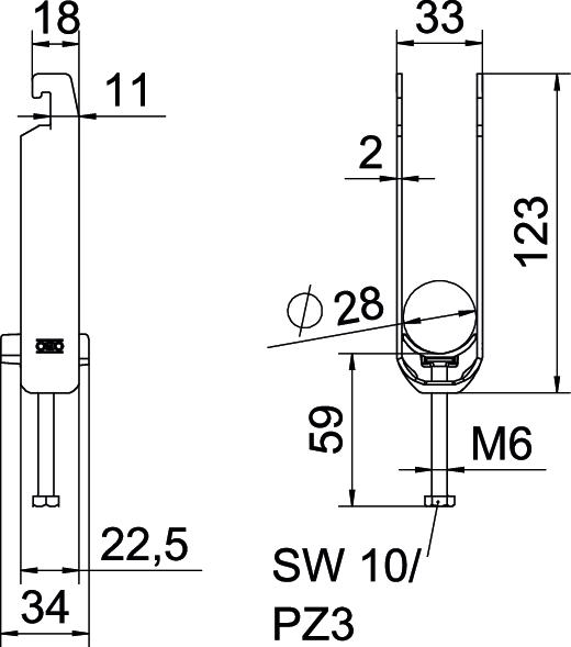 Opis proizvodaLučna obujmica sa U-stopom, plastično pritisno korito od polipropilena. Za vertikalnu i horizontalnu montažu 3 pojedinačna kabla na C-profilnu šinu. Za širinu proreza 18 mm или 22 mm. Pomoću zavrtnja sa 1-strukim navojem pričvrstiti na pritisno korito, univerzalna šestostrana glava zavrtnja SW10, sa ravnim ili krstastim prorezom. Pogodno za montažu u zatvorenom i na otvorenom prostoru. Više kablova treba odvojiti dvostrukim koritom. Preporučuje se upotreba kontrakadice