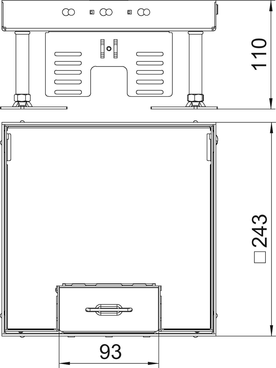 Opis proizvodaMetalna podna kutija sa stopicama sa izlazom za kabl nominalne veličine 9 za ugradnju instalacionih uređaja u podove sa suvim održavanjem u unutrašnjim oblastima.