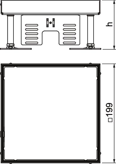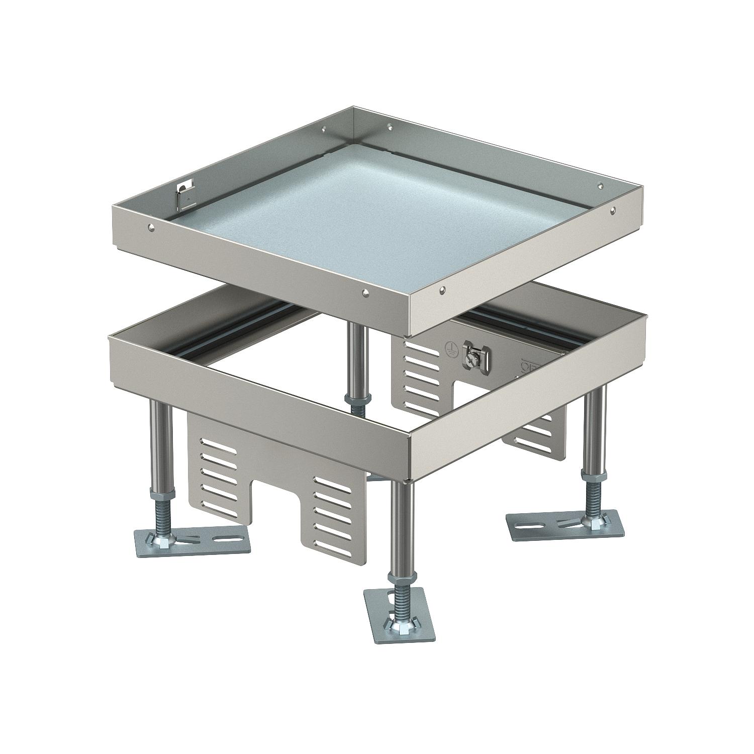 Opis proizvodaNivelirajuća kvadratna kazeta, slijepa, nazivne veličine 4, za revizijski otvor u sustavima podnih kanala, dvostrukim ili šupljim podovima, sa suhim ili mokrim održavanjem u zatvorenom prostoru. Samo za glatke podne obloge. Klasa zaštite: IP Ks5.