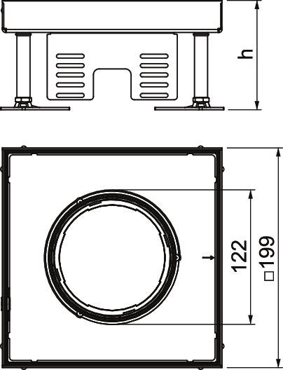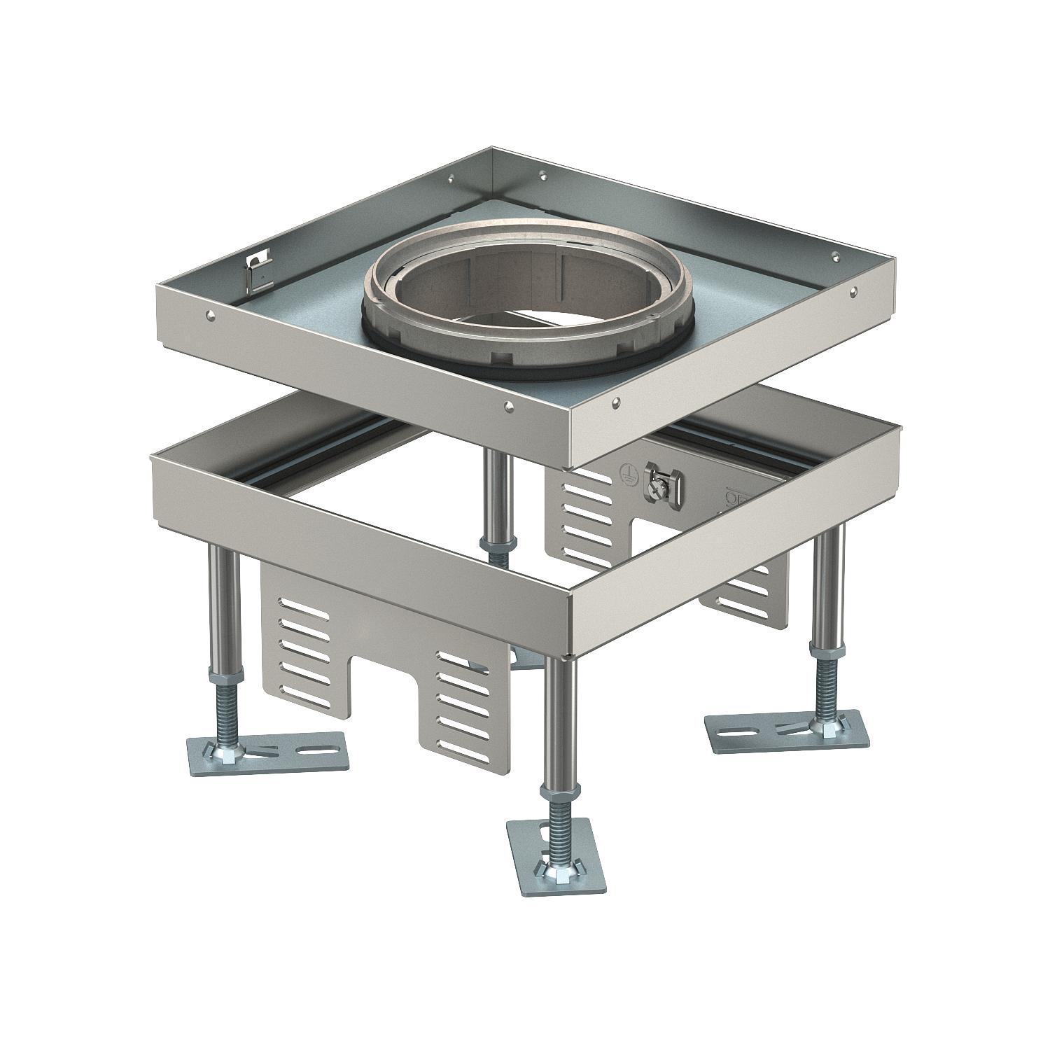 Opis proizvodaNivelirajuća kvadratna kazeta za tubus, veličine 4, za ugradnju elektroelemenata u sustavima podnih kanala, dvostruke i šuplje podove sa suhim ili mokrim održavanjem u zatvorenom prostoru. Klasa zaštite: IP Ks5.