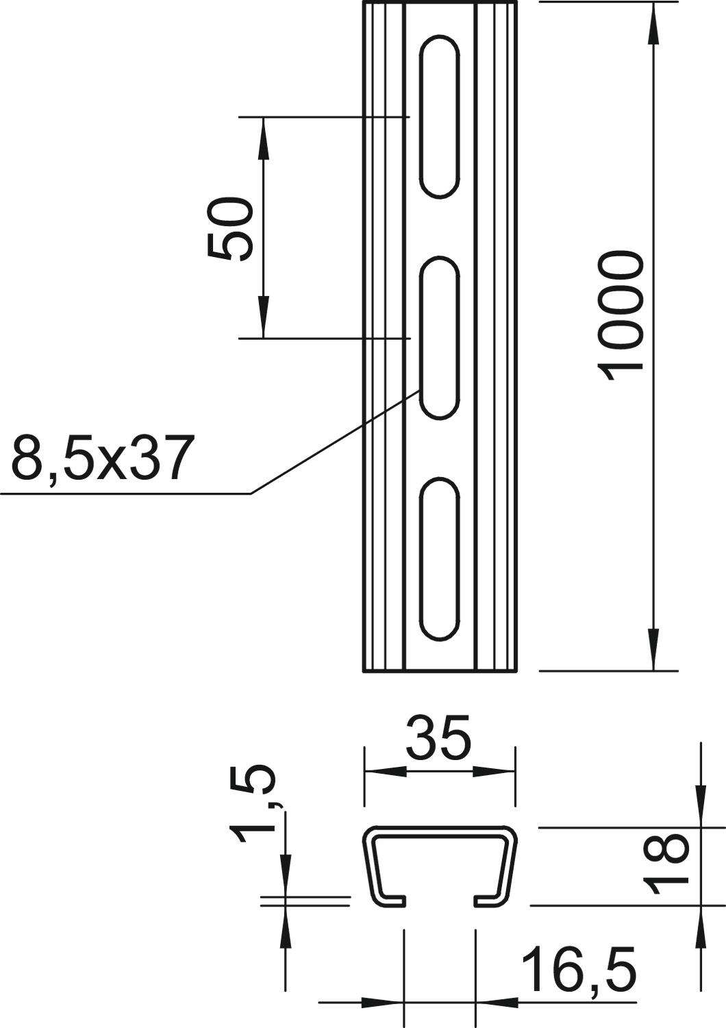 Opis proizvodaSrednja C profilna šina za postavljanje kablova, u spoju sa lučnim obujmicama sa stopom u obliku čekića. Primenljiva i kao viseća konstrukcija za sisteme nosača kablova.