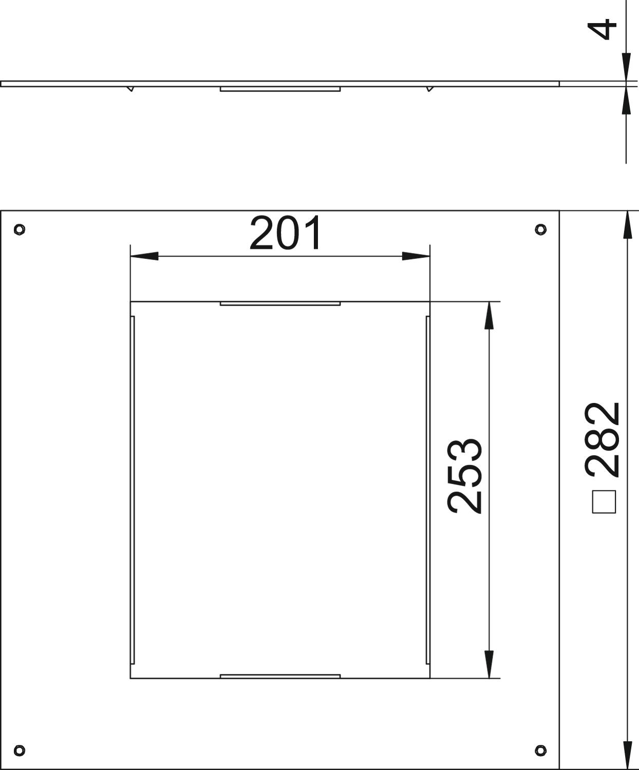 Opis proizvodaMontažni poklopac za podna kućišta tipa UZD250-3/4 za ugradnju ugaone opdne kutije nominalne veličine 6. Ugradni otvor dublji za 3 mm, za naknadno maskiranje sa slepim poklopcem.