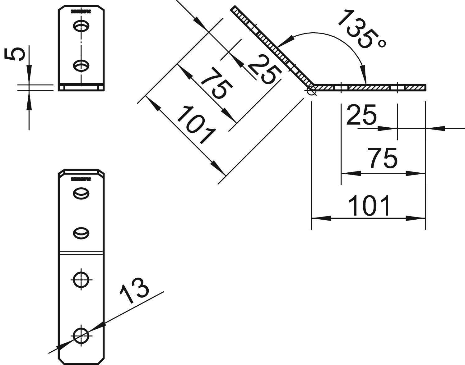 Opis proizvodaMontažni ugaonik sa 4 rupe za povezivanje profilnih šina 41 x 41 mm i 41 x 21 mm pod uglom od 45°.