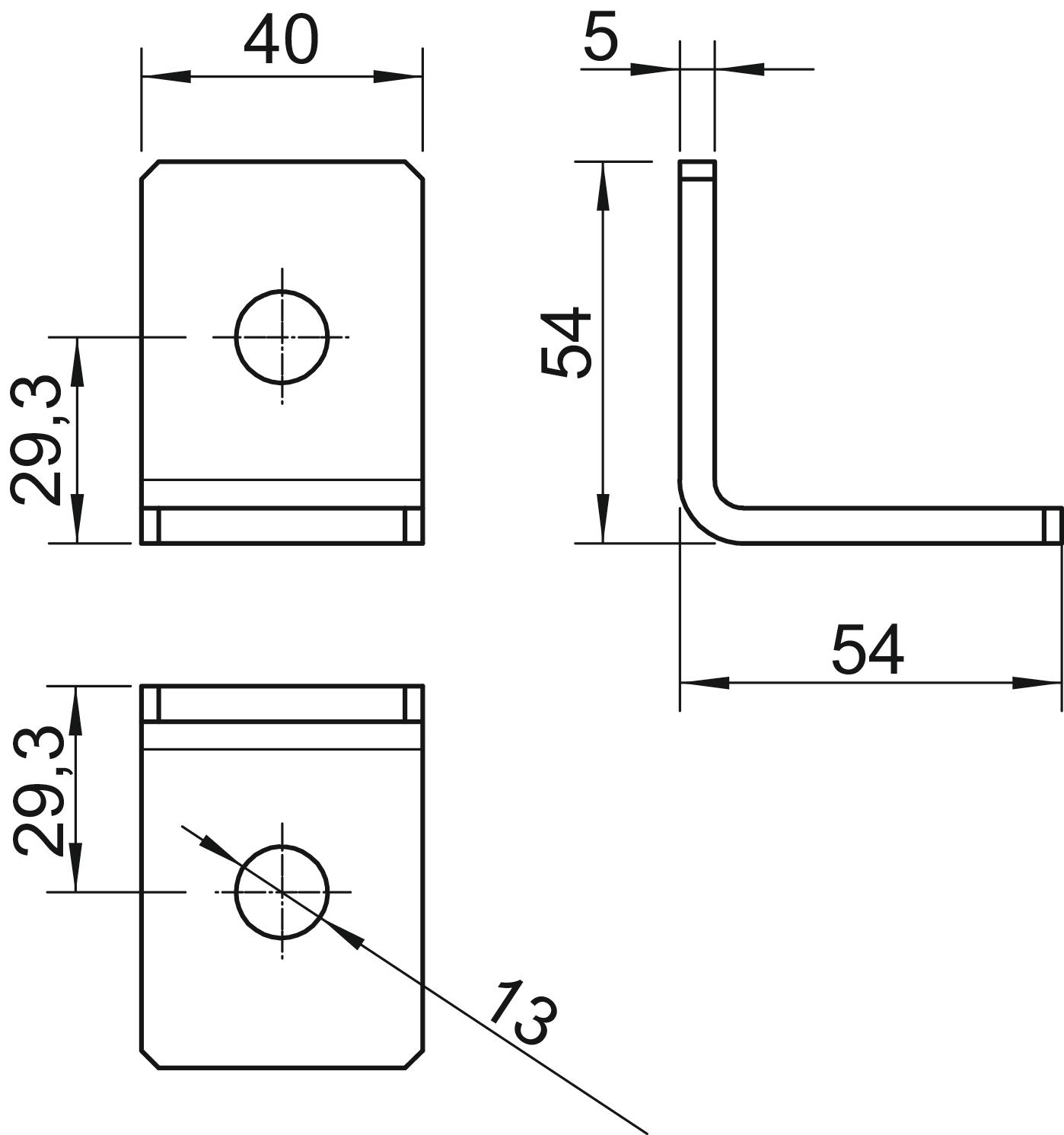 Opis proizvodaMontažni ugaonik sa 2 rupe za povezivanje profilnih šina 41 x 41 mm i 41 x 21 mm pod uglom od 90°.