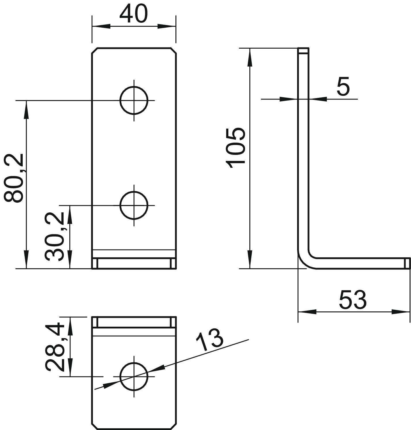 CO2 otisak (GWP) od kolevke do kapije 0,5041 kg CO2e / 1 Komad Debljina materijala 5 mm Dimenzija 105x53x40x5 Dužina 105 mm Materijal Čelik Nerđajući čelik, nagrižen ne Odgovara za forme profila C-profil Površina vruće pocinkano utapanjem S vijčanim priborom ne Širina 40 mm Varijanta 90°-ugao Veličina rupe 13 mm Visina 53 mm - Svi tipovi