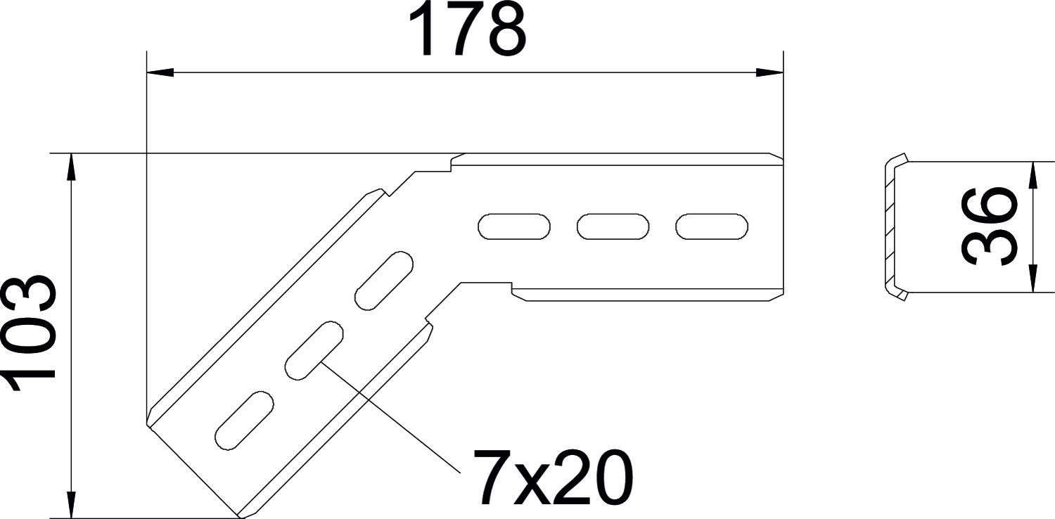 Opis proizvodaMontažni ugaonik 45°, vertikalan, za C-mrežaste nosače kablova i mrežaste nosače kablova GR-Magic bočne visine 55 mm.