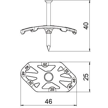 Opis proizvodaObujmica sa ekserom Nagel-Fix 2.0 sa unapred montiranim pocinkovanim čeličnim ekserom, za učvršćivanje vodova u prorezima u zidu od 25 - 46 mm i na zidovima.