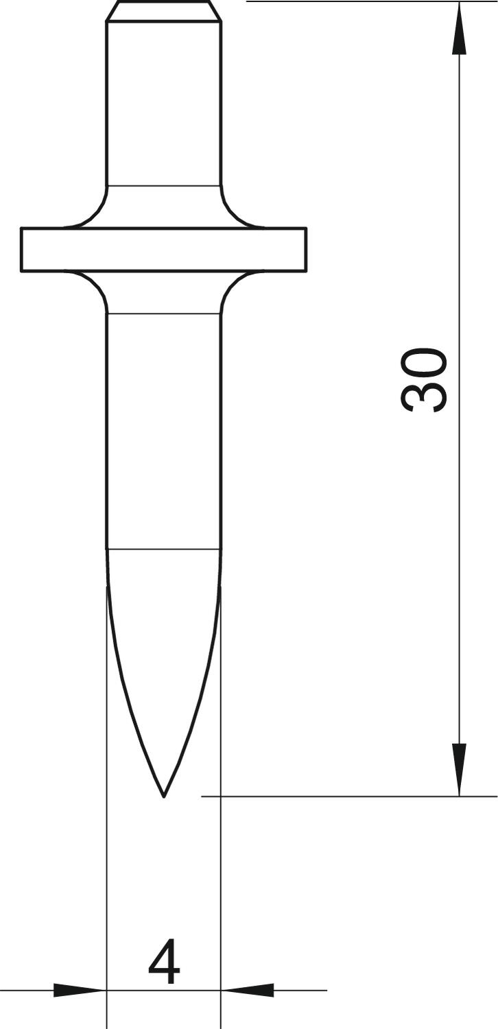 Dimenzija L22mm Dimenzija D min. 4 mm Dimenzija L 30 mm Dužina 30 mm Dužina drške 22 Materijal Čelik Ojačano da Prečnik prirubnice 10 mm - Svi tipovi