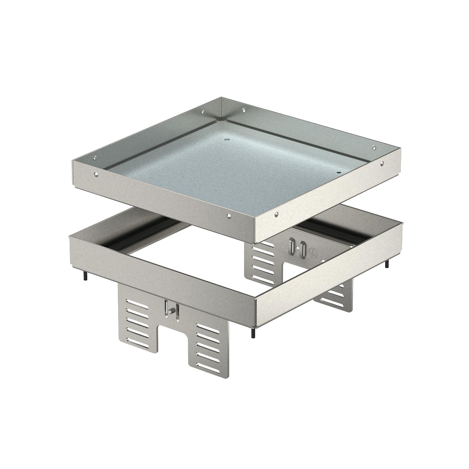 Metalna podna kutija sa nivelacijom kao maskirna kaseta, 2-kanalna. Mogu da se instaliraju 2 poklopca APMT2. Za ugradnju 2 univerzalna nosača UT3 za 4 pojedinačna instalaciona uređaja sa nosećim prstenom/lukom ili 6 Modul 45 uređaja.
