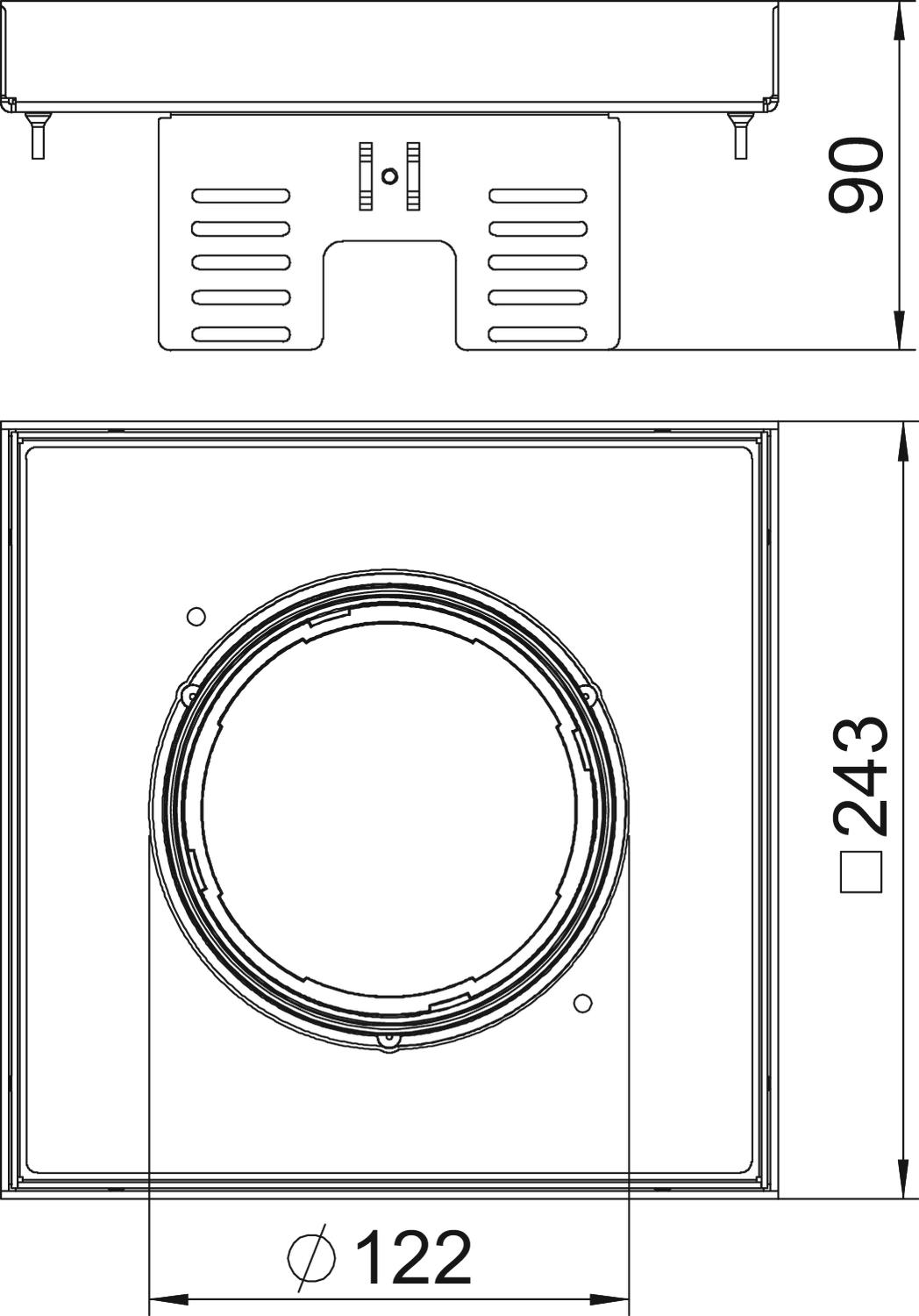 Izravnava kaseta, odvojena od poda, nominalne veličine 9, za cev, za ugradnju instalacionih uređaja u podove sa suvim ili mokrim čišćenjem u zatvorenom prostoru, za ugradnju u podne kutije UZD250 ili UZD350, svaka u kombinaciji sa montažnim poklopcem DUG../9. Montira se pomoću nosača za izravnavanje (naručite posebno) u aluminijumski profil rama podnih kućišta.
