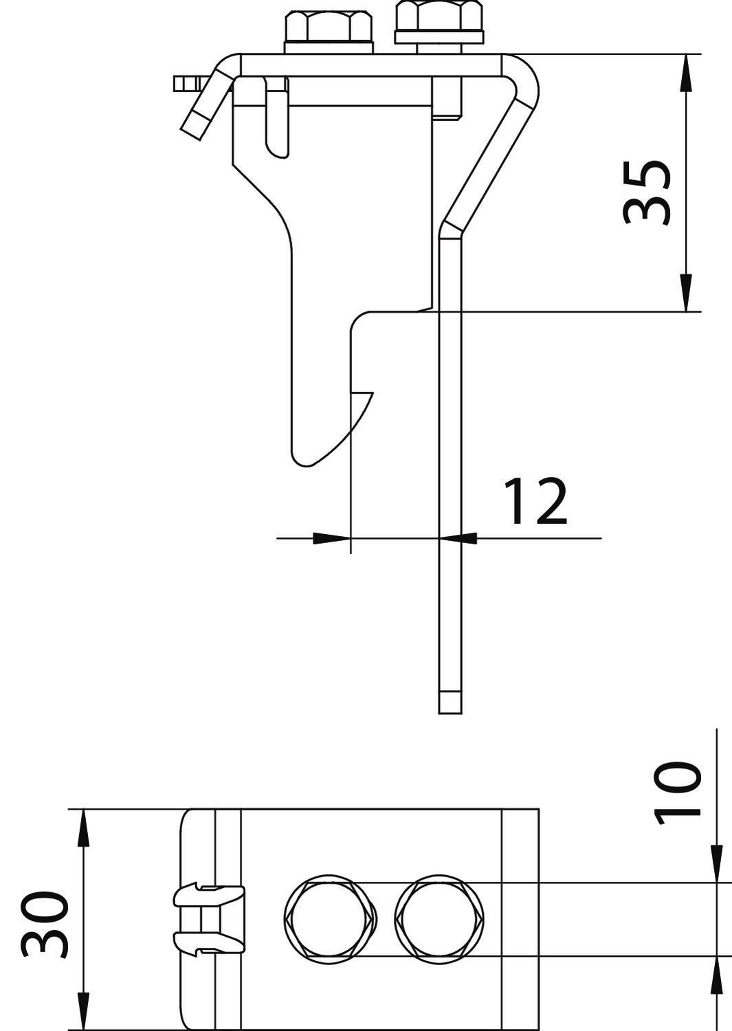 Opis proizvodaOdstojnik za montažu poklopaca na nosače kablova i lestvičaste nosače kablova na odstojanju. Odstojna visina 35 mm, nerđajući čelik 1.4301.