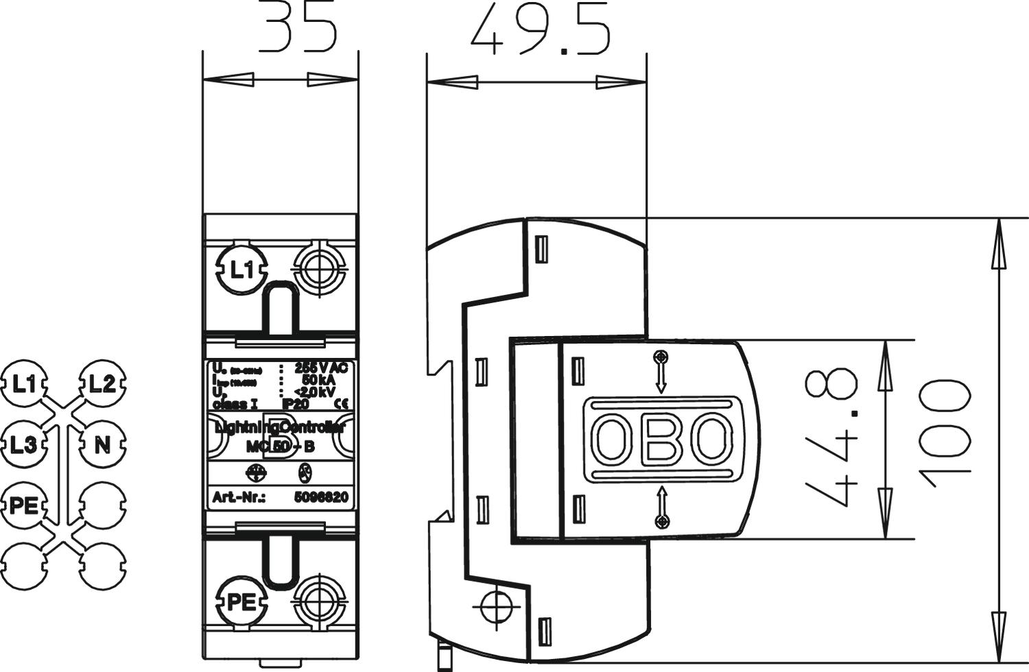 Opis proizvodaOdvodnik prenapona tipa 1 prema DIN EN 61643-11 za interfejs 0 na 1 (LPZ) prema konceptu zona gromobranske zaštite prema IEC 61312-1 odn.