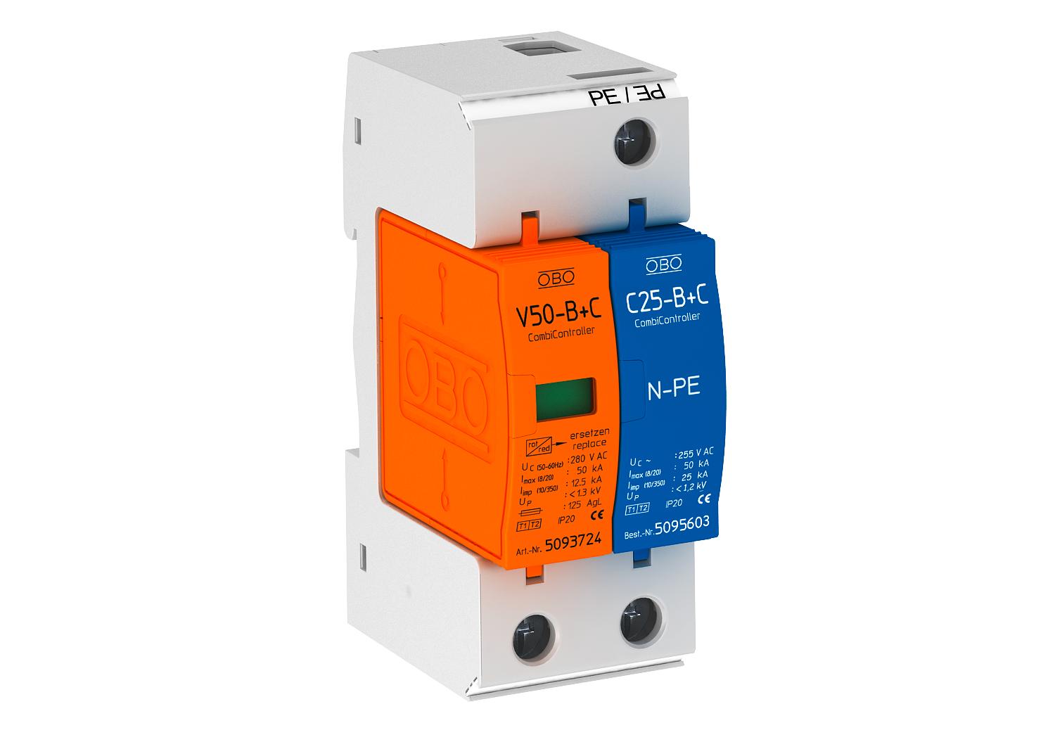 Opis proizvodaKombinovani odvodnik, odvodnik prenapona i struje groma tipa 1+2 prema DIN EN 61643-11.