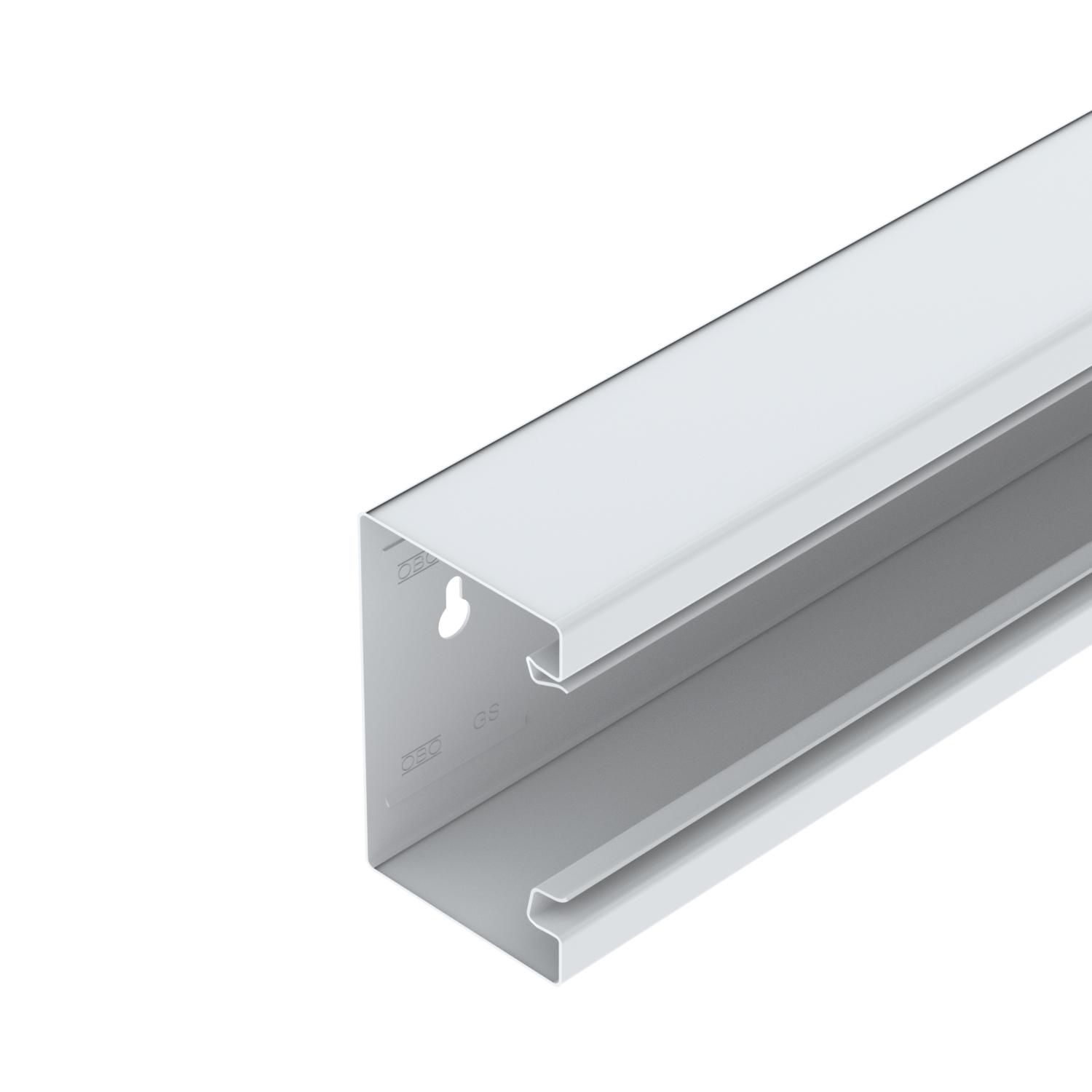 Opis proizvodaGS parapetni kanal za montažu na zid ili pričvrsne konzole. GS parapetni kanal raspolaže samokontaktnim vezicama za montažu pregradnih zidova od čeličnog lima. Izjednačavanje potencijala između donjih delova kanala ostvaruje se pomoću spojnice. Između poklopca i donjeg dela, zaštitne mere i izjednačavanje potencijala obezbeđuje se kroz patentirane, samokontaktne poklopce kanala. Sistemski otvor realno iznosi 76,5 mm. Poklopac mora da se naruči posebno.