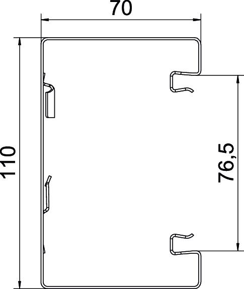 Antibakterijski tretman ne bez halogena da Boja cink Broj dodatnih pregradnih zidova 1 Broj poklopaca 1 CO2 otisak (GWP) od kolevke do kapije 0,1841 kg CO₂e / 1 Metar Dimenzija 70x110x2000 Dužina 2000 mm Klema za kablove ne Korisni presek 6036 mm² Materijal Čelik Montažna perforacija u podu da Način montaže poklopaca nalazi se unutra Podna perforacija sa podnom perforacijom Poklopac priložen ne Površina hladno pocinkovano Pravougli model da Simetrično da Širina 110 mm Širina poklopca 76,5 mm Spojnica kanala ne Stepen zaštite IK-kod IK10 Temperaturna oblast primene maks. 60 °C Temperaturna oblast primene min. -25 °C Varijanta zadnje strane (unutrašnja strana) sa uklopnim kontra-elementom Visina 70 mm Vrsta zaštite IP30 Zaštitna folija ne - Svi tipovi