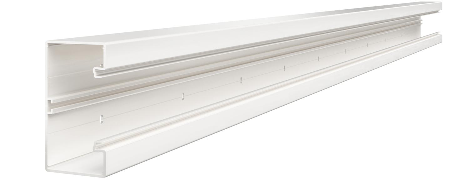 Opis proizvodaGKH parapetni kanal od PC/ABSa bez halogena podoban za montažu direktno na zid ili zidne konzole. Pričvršćivanje se izvodi preko perforacija u kanalu. GKH parapetni kanal raspolaže sa jednim C-profilom na podu za prihvatanje pregrade od plastike. U kutijama za uređaje serije 71GD... svi programi prekidača mogu da se instaliraju u noseći prsten lučnim načinom ugradnje, kao i Modul 45 instalacioni uređaji. Sistemski otvor iznosi 76,5 mm. Na svaki komad kanala montiran je po jedan par spojnica.