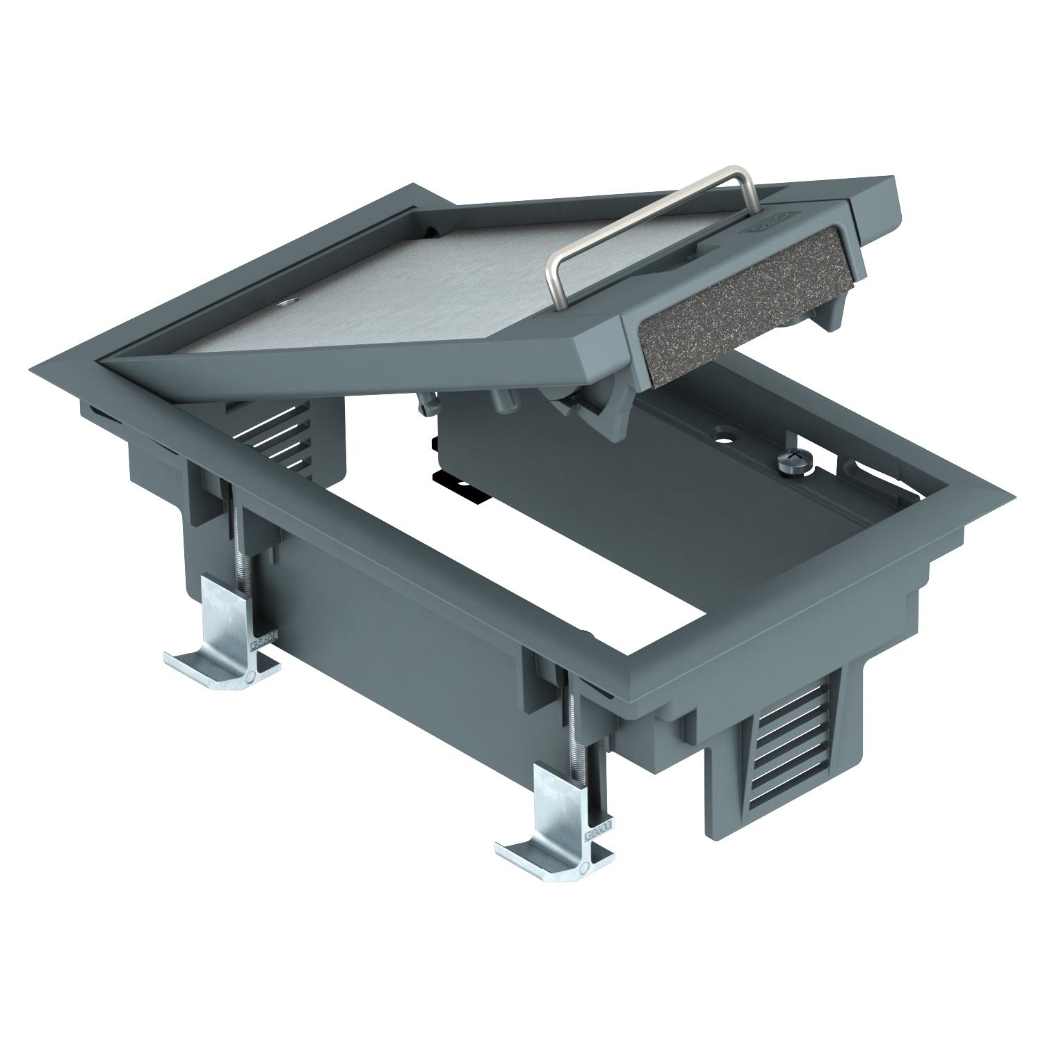 Opis proizvodaPodna kutija sa lučnom drškom za do 3 Modul 45-pojedinačna uređaja u jednom univerzalnom nosaču UT3, primena u sistemskim podovima u unutrašnjim oblastima.