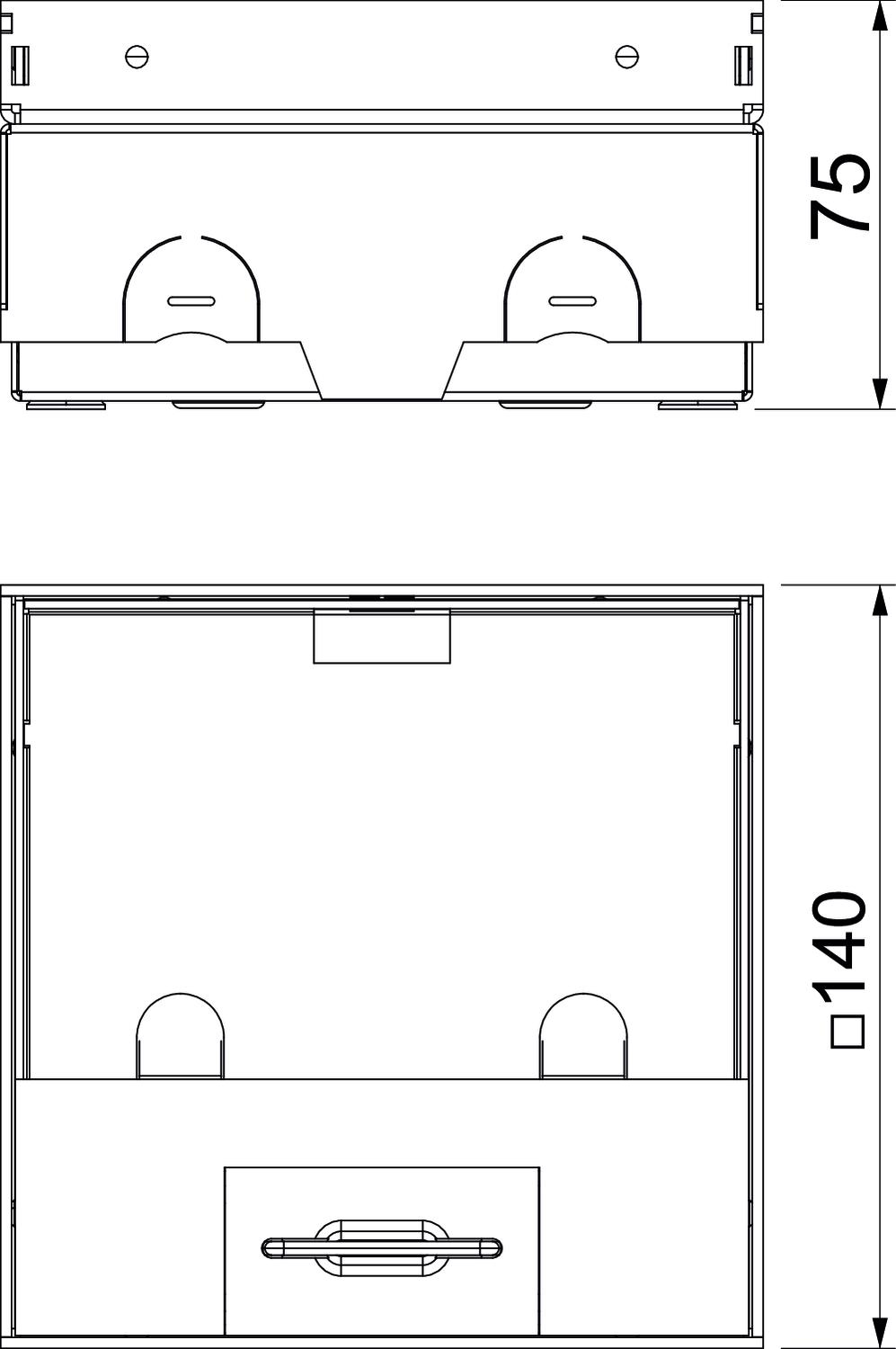 Opis proizvodaKvadratna podna kutija za upotrebu u sistemima koji se održavaju na suvo i podovima sa košuljicom u zatvorenom prostoru. Ugradno kućište sa obeleženim uvodnim otvorima za cevi (M20/M25). Gornji deo može se podesiti do gornje ivice podne obloge pomoću 4 nosača za izravnavanje. Minimalna dubina ugradnje je 75 mm, opseg nivelisanja je + 30 mm. Okvir i poklopac od mesinga vidljivi u podnoj oblozi. Poklopac sa udubljenjem za podne obloge. Nosivost od 15 kN je zagarantovana samo kada se ne koristi. Prazno kućište za Modul 45® instalacioni uređaj i utičnicu za prenos podataka. Kada se isporuči, zatvoreno slepom pločom.