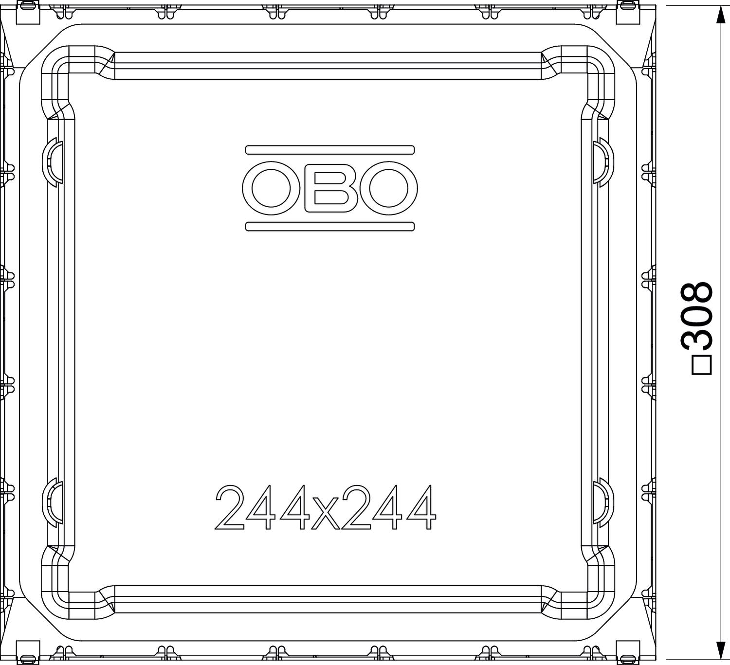 Opis proizvodaPodna kutija sa fiksnim i nepromenljivim ugradnim otvorom 244 x 244 mm za ugradnu jedinicu nominalne veličine 9. Montažni otvor se pravi pomoću ograničenog tela sadržanog u obimu isporuke. Podna kutija raspolaže ugradnim otvorima za po tri 1-delna PVC kanala nominalne veličine 60 x 25 i 90 x 35 na sve četiri strane. Kutija je generalno pogodna za primenu u nadgradnjama poda sa košuljicom od cementa, visine nadgradnje do 100 mm.