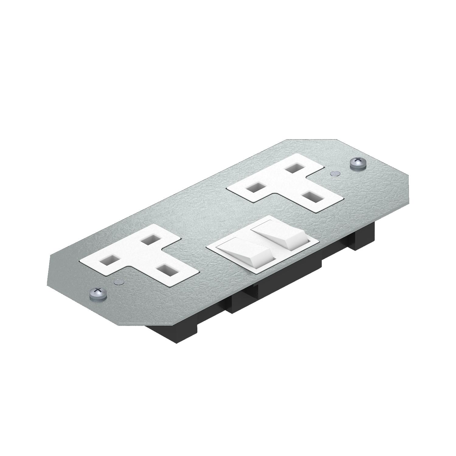 Opis proizvodaPoklopac sa jednom priključenom 2-strukom utičnicom za ugradnju u montažni nosač ispod ugradnih jedinica GES i metalnih podnih kutija.