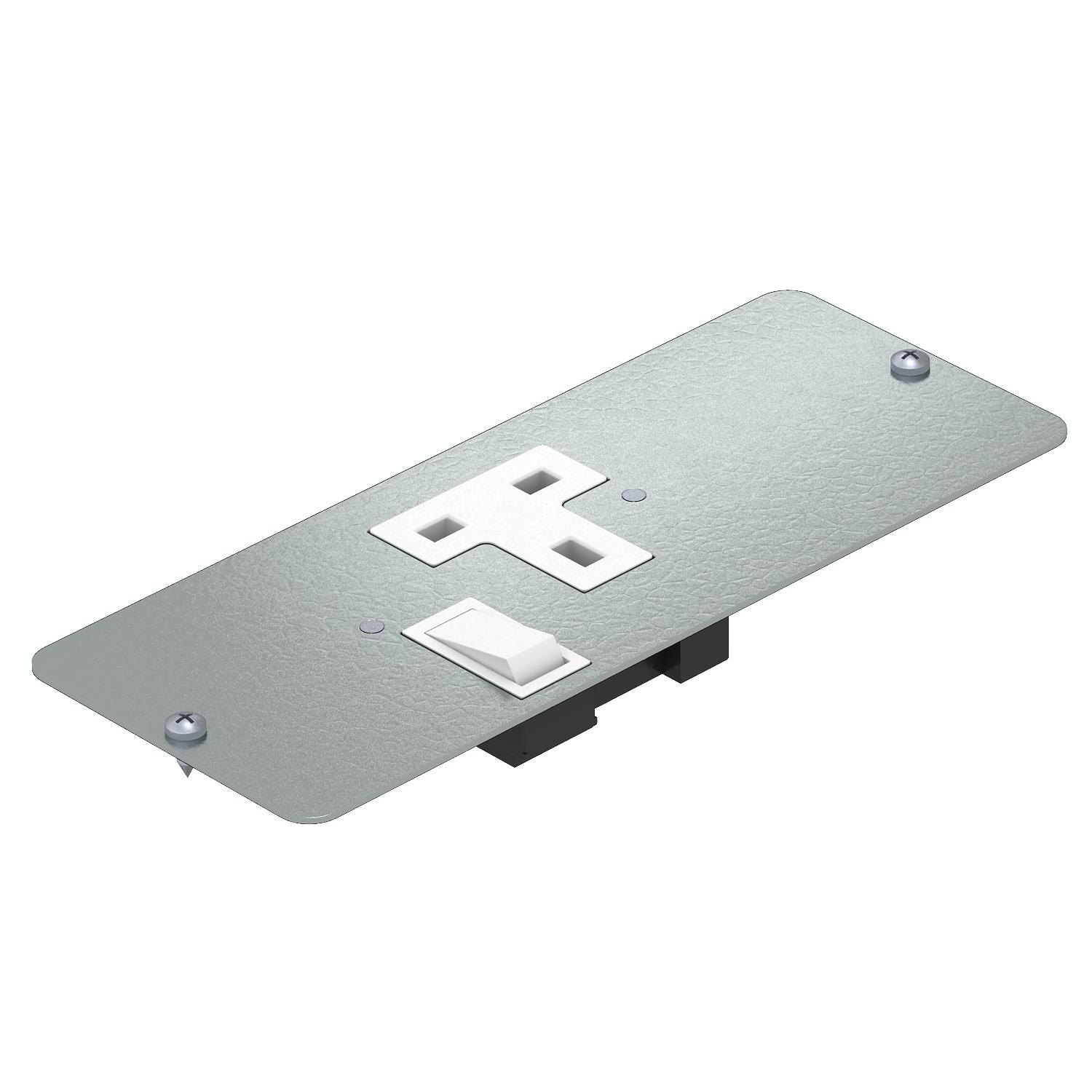 Opis proizvodaPoklopac sa jednom priključenom 1-strukom utičnicom za ugradnju u montažni nosač ispod ugradnih jedinica GES i metalnih podnih kutija.