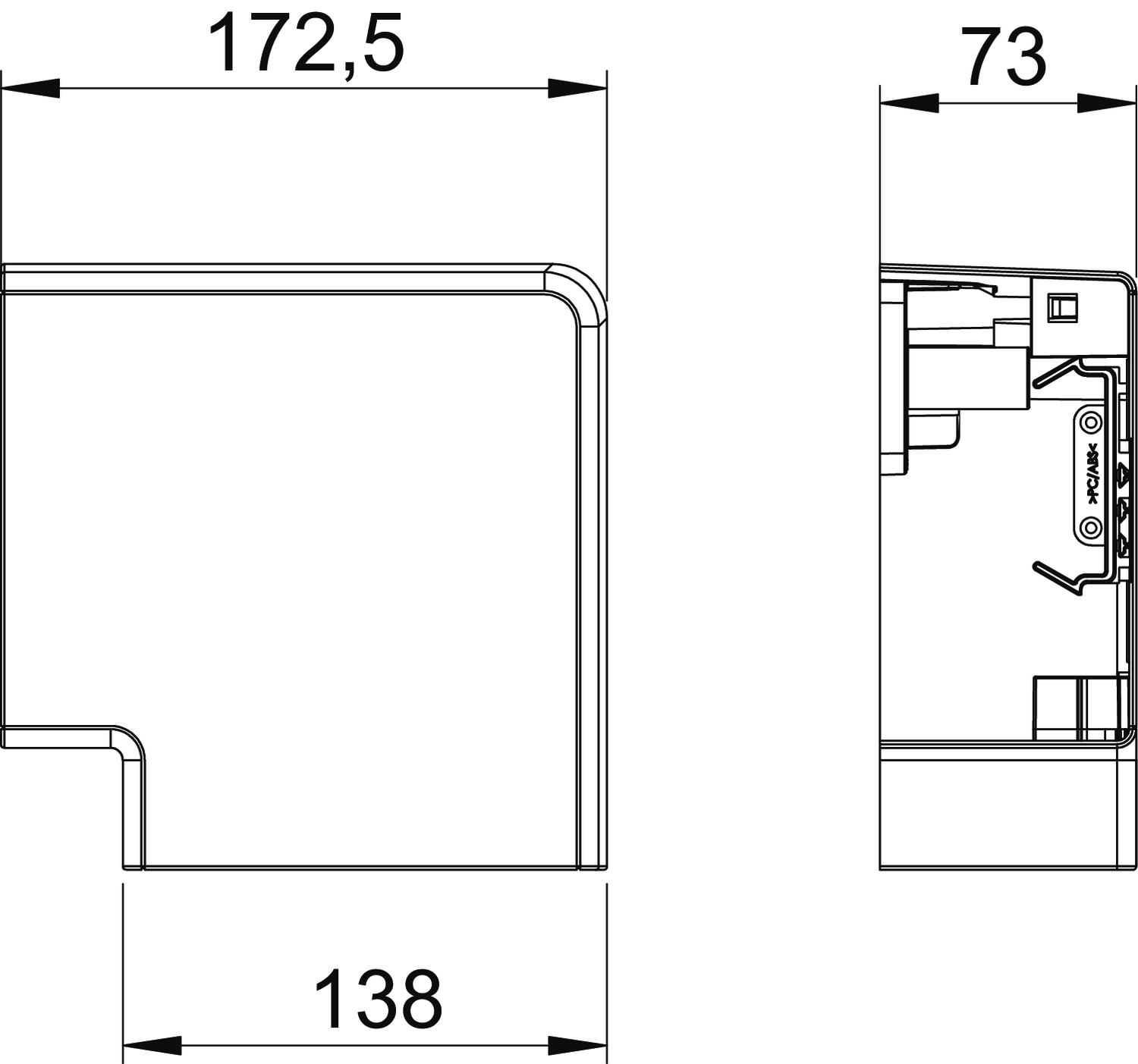 Antibakterijski tretman ne bez halogena da Boja čisto bela; RAL 9010 Broj poklopaca 1 CO2 otisak (GWP) od kolevke do kapije 1,2699 kg CO2e / 1 Komad Dimenzija 70x130mm Dužina 172,5 mm Klema za kablove ne Materijal Polikarbonat/akrilnitril-butadien-stirol Montažna perforacija u podu ne Način montaže poklopaca prelazno Oblast ugla maks. 90 mm Oblast ugla min. 90 mm Promena pravca vertikalno uzlazno/silazno Simetrično da Širina 138 mm Spojnica kanala ne Stepen zaštite IK-kod IK08 Temperaturna oblast primene maks. 60 °C Temperaturna oblast primene min. -15 °C Varijanta Fazonski komad poklopca Visina 73 mm Vrsta zaštite IP30 za širinu kanala 130 mm za visinu kanala 70 mm Zaštitna folija da - Svi tipovi