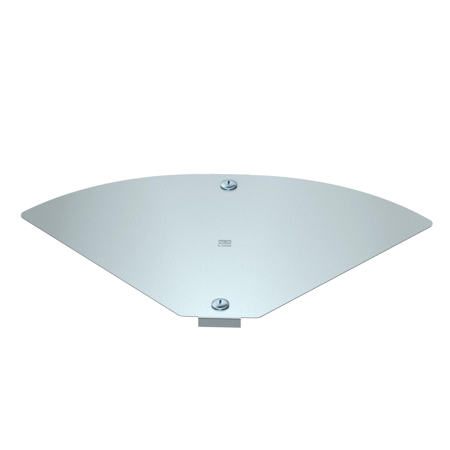 Opis proizvodaPoklopac za varijabilnu krivinu, podesiv u jednom uglu od 0 do 90°, aretiranje pomoću obrtne brave i preklapanjem sa poklopcem nosača kablova.