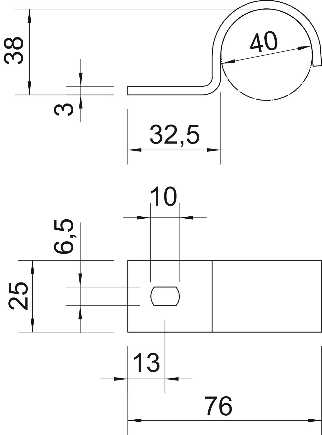bez halogena da Broj kablova/cevi 1 CO2 otisak (GWP) od kolevke do kapije 0,1853 kg CO2e / 1 Komad Debljina materijala 2 mm Dimenzija 40mm Dimenzija A 13 mm Dimenzija b 25 mm Dimenzija D 40 mm Dimenzija H 38 mm Dimenzija L 32,5 mm Dimenzija L1 76 mm Dimenzija t 3 mm Dužina 76 mm Materijal Čelik Nominalni prečnik 40 mm Omotano plastikom ne Pogoduje za protivpožarnu oblast ne Površina vruće pocinkano utapanjem Rastojanje od zida ne Širina 25 mm UL-postojani da Varijanta jednoslojni Veličina M40 Veličina rupe 6,5 x 10 mm Visina 38 mm Vrsta pričvršćivanja Rupa za navojno pričvršćivanje za prečnik 40 - Svi tipovi