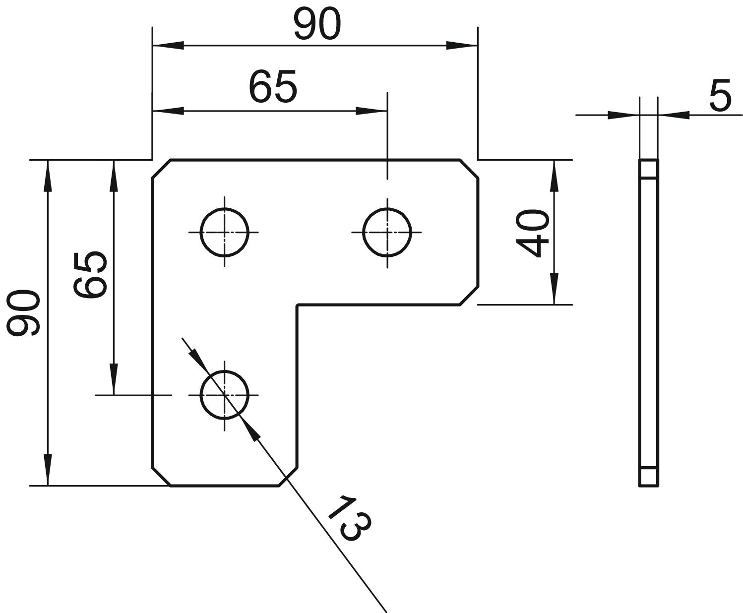 Opis proizvodaPriključna ploča s 3 rupe za ugaono spajanje profilnih šina 41 x 41 mm i 41 x 21 mm.