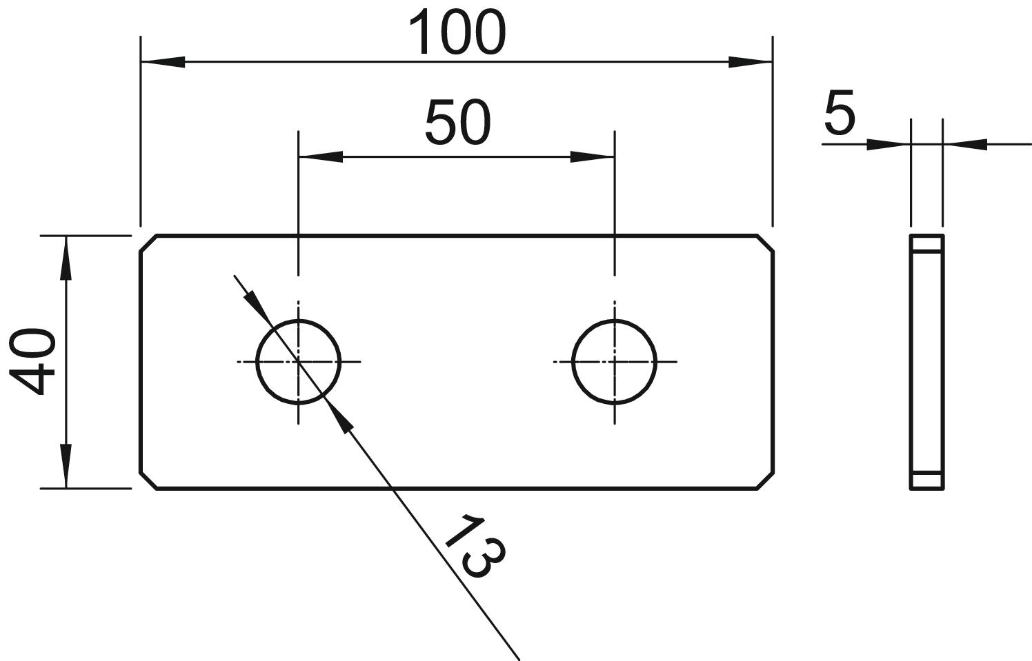 Opis proizvodaPriključna ploča sa 2 rupe za spajanje po dužini profilnih šina 41 x 41 mm i 41 x 21 mm.
