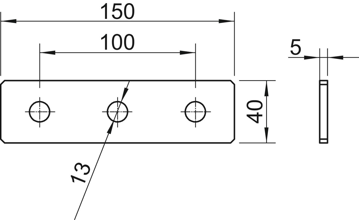 Opis proizvodaPriključna ploča sa 3 rupe za spajanje po dužini profilnih šina 41 x 41 mm i 41 x 21 mm.