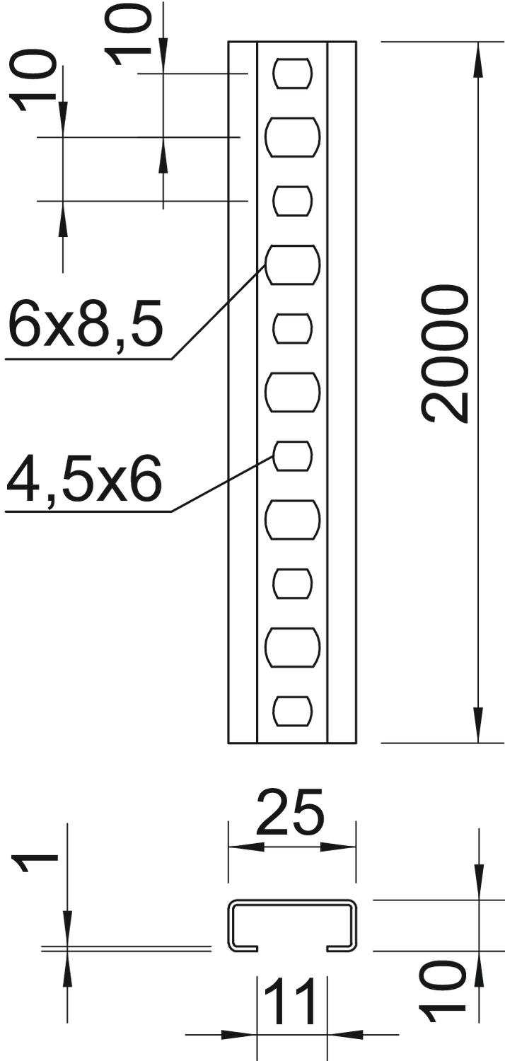 CO2 otisak (GWP) od kolevke do kapije 0,9293 kg CO2e / 1 Metar Debljina materijala 1 mm Dimenzija 2000x25x10 Dimenzija L 2000 mm Dužina 2000 mm Materijal Čelik Može da se lomi ne Oblik profila C-profil Održavanje funkcionalnosti ne Površina hladno pocinkovano Razmak perforacije po sredini 10 mm S perforacijama da Sa nazubljenjem ne Širina 25 mm Širina proreza 11 mm Statička vrednost A 0,44 cm² Statička vrednost ly 0,06 cm⁴ Statička vrednost lz 0,44 cm⁴ Statička vrednost Wy 0,12 cm³ Statička vrednost Wz 0,35 cm³ Svežanj 50 m Varijanta Jednostruki profil Visina 10 mm Vrsta perforacija Zadnja strana perforirana - Svi tipovi