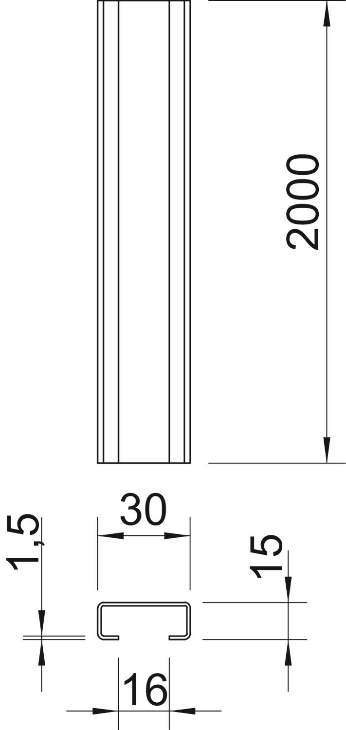 Opis proizvodaProfilna šina, puna, širina proreza 16mm 2000x30x15