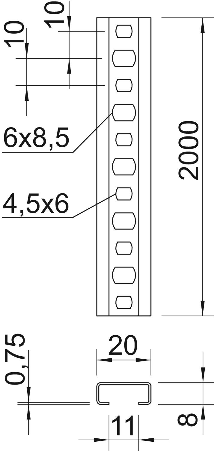 CO2 otisak (GWP) od kolevke do kapije 0,5147 kg CO2e / 1 Metar Debljina materijala 0,75 mm Dimenzija 2000x20x8 Dimenzija L 2000 mm Dužina 2000 mm Materijal Čelik Može da se lomi ne Oblik profila C-profil Održavanje funkcionalnosti ne Površina hladno pocinkovano Razmak perforacije po sredini 10 mm S perforacijama da Sa nazubljenjem ne Širina 20 mm Širina proreza 11 mm Statička vrednost A 0,24 cm² Statička vrednost ly 0,02 cm⁴ Statička vrednost lz 0,17 cm⁴ Statička vrednost Wy 0,05 cm³ Statička vrednost Wz 0,17 cm³ Svežanj 50 m Varijanta Jednostruki profil Visina 8 mm Vrsta perforacija Zadnja strana perforirana - Svi tipovi